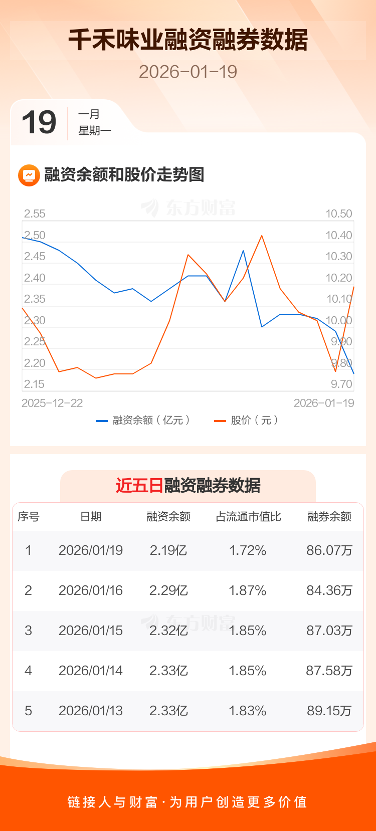 交易所最新数据显示,千禾味业于2026年1月19日获融资买入1403.71万元,融资偿还2387.18万元,当日融资净偿还983.46万元。目前,该股融资余额2.19亿,占流通市值比例为1.72%。