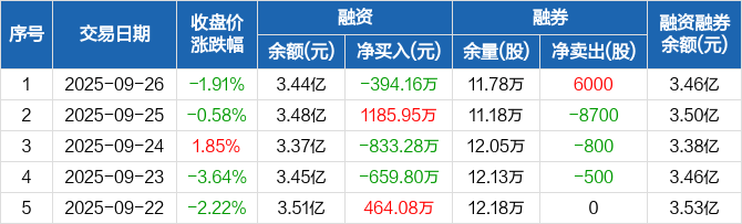三维股份:融资净偿还394.16万元,融资余额3.44亿元(09-26)