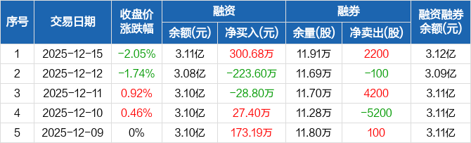 三维股份:融资净买入300.68万元,融资余额3.11亿元(12-15)