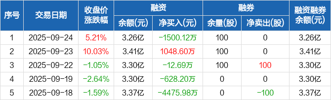 常熟汽饰:融资净偿还1500.12万元,融资余额3.26亿元(09-24)