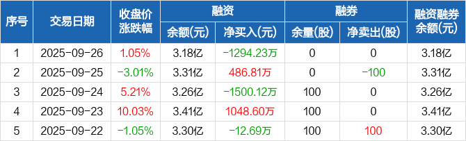 常熟汽饰:融资净偿还1294.23万元,融资余额3.18亿元(09-26)