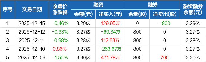 常熟汽饰:融资净买入129.95万元,融资余额3.29亿元(12-15)