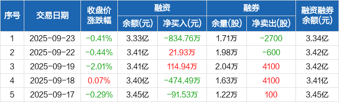 泛微网络:融资净偿还834.76万元,融资余额3.33亿元(09-23)
