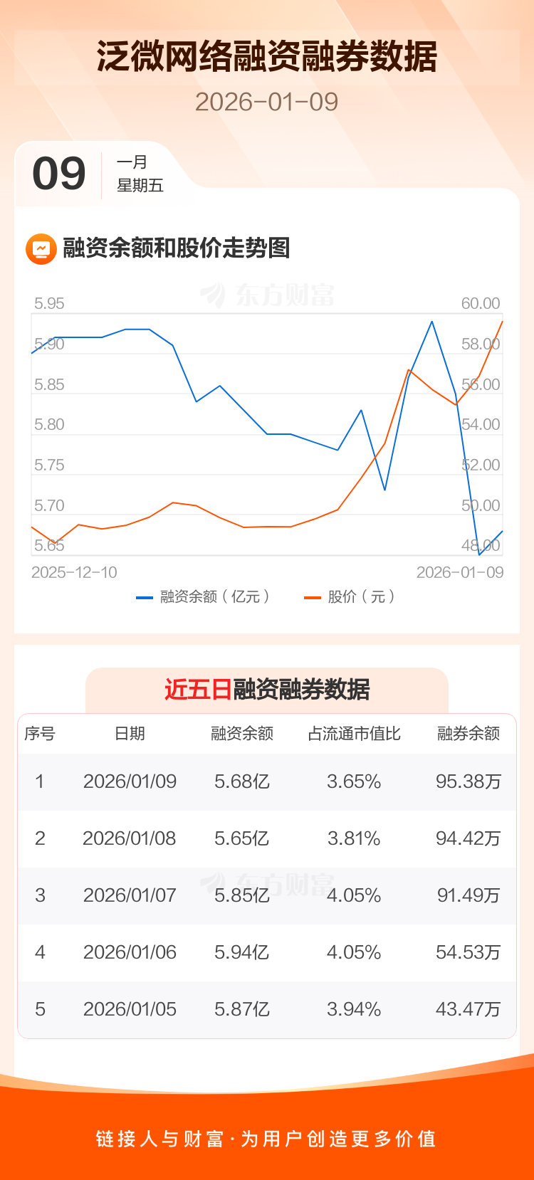 交易所最新数据显示,泛微网络于2026年1月9日获融资买入2880.08万元,融资偿还2577.86万元,当日融资净买入302.21万元。目前,该股融资余额5.68亿,占流通市值比例为3.65%。