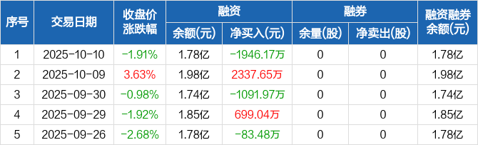 华脉科技:融资净偿还1946.17万元,融资余额1.78亿元(10-10)