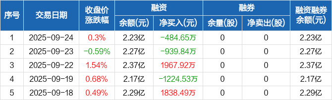 中策橡胶:融资净偿还484.65万元,融资余额2.23亿元(09-24)