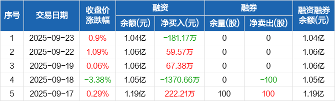 科林电气:融资净偿还181.17万元,融资余额1.04亿元(09-23)
