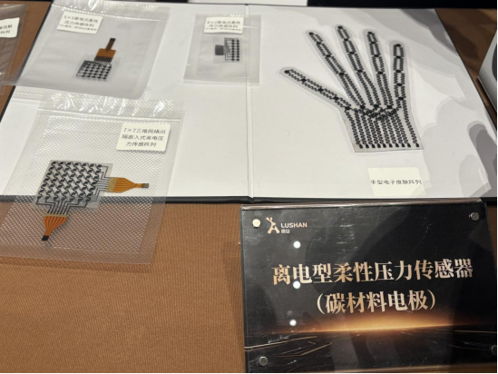 汪加胜在现场介绍,鹿山新材以离电型柔性电子皮肤为核心技术路线,结合在离子材料、柔性介电层与精密微结构成型方面的积累,开发具备高灵敏度、宽量程、低功耗、本质柔性的触觉传感器。