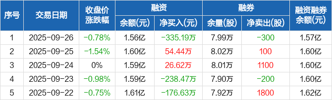 台华新材:融资净偿还335.19万元,融资余额1.56亿元(09-26)