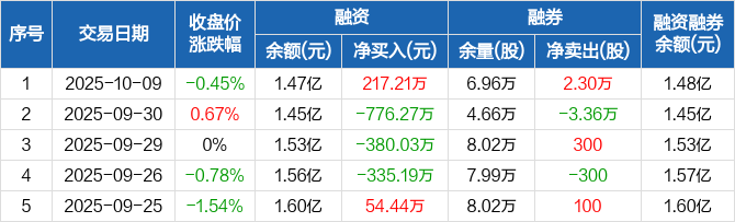 台华新材:融资净买入217.21万元,融资余额1.47亿元(10-09)