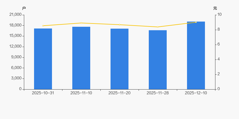 截至2025年12月10日,公司最新总股本为4.19亿股,其中流通股本为1.97亿股。户均持有流通股数量由上期的1.18万股下降至1.03万股,户均流通市值9.27万元。