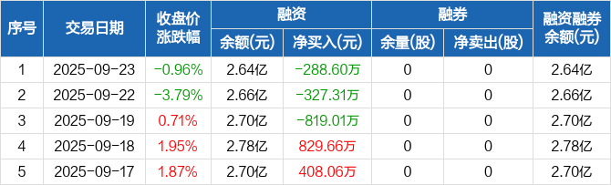 振华股份:连续3日融资净偿还累计1434.92万元(09-23)