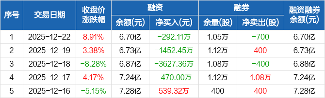 振华股份:连续4日融资净偿还累计5841.92万元(12-22)