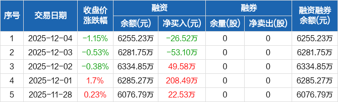 万控智造:融资净偿还26.52万元,融资余额6255.23万元(12-04)