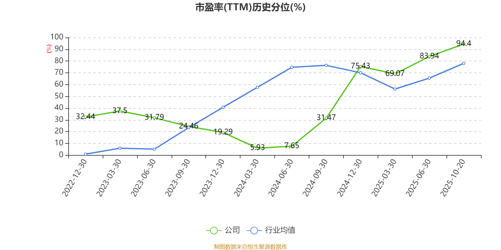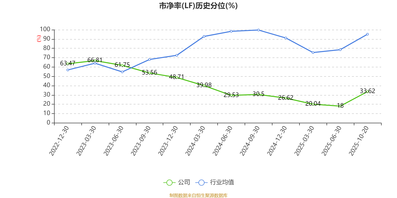 市盈率、市净率为负时,不显示当期分位数,会导致折线图中断。