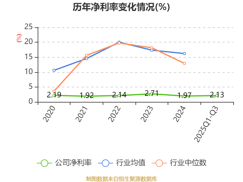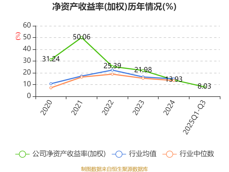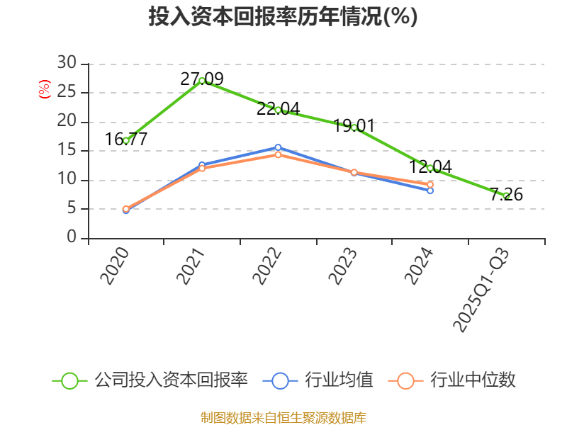 盈利能力方面, 2025年前三季度公司加权平均净资产收益率为8.03%,同比下降2.02个百分点。公司2025年前三季度投入资本回报率为7.26%,较上年同期下降1.4个百分点。