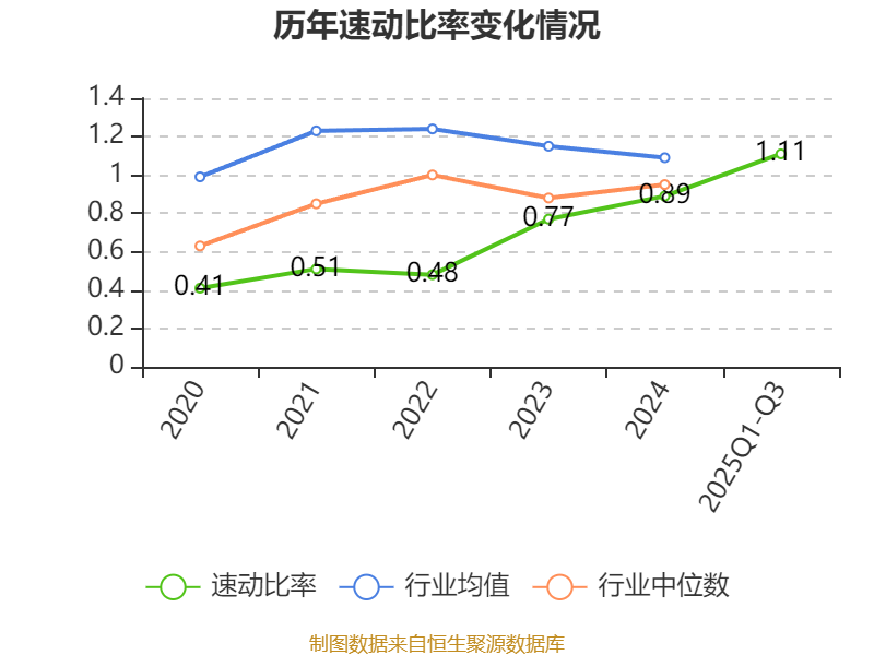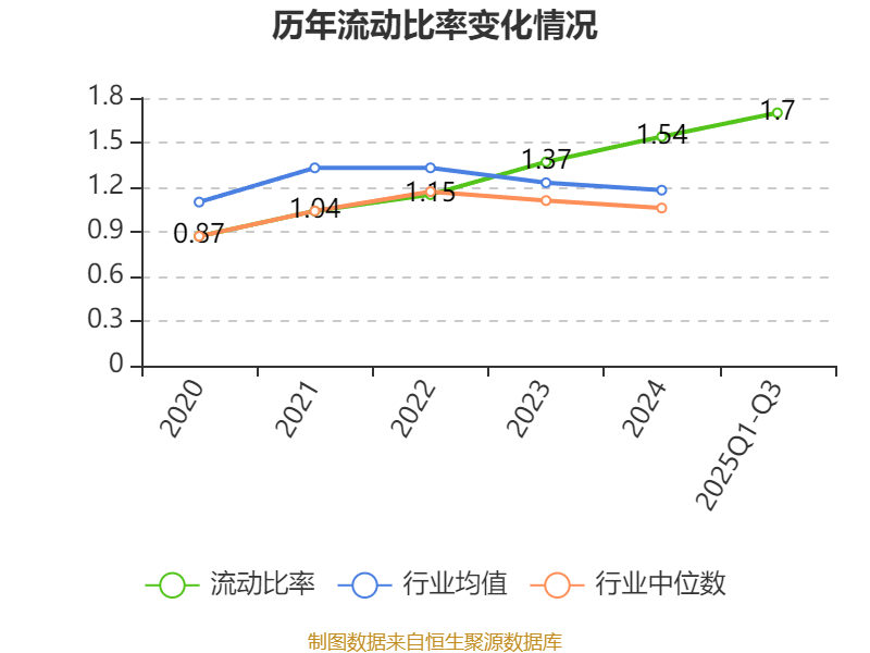 2025年前三季度,公司流动比率为1.7,速动比率为1.11。