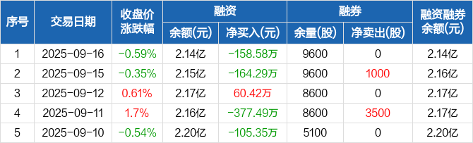天和磁材:融资净偿还158.58万元,融资余额2.14亿元(09-16)