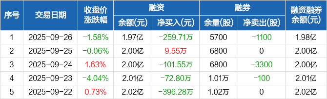天和磁材:融资净偿还259.71万元,融资余额1.97亿元(09-26)