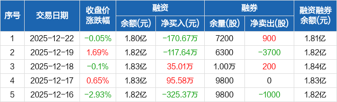 天和磁材:融资净偿还170.67万元,融资余额1.8亿元(12-22)