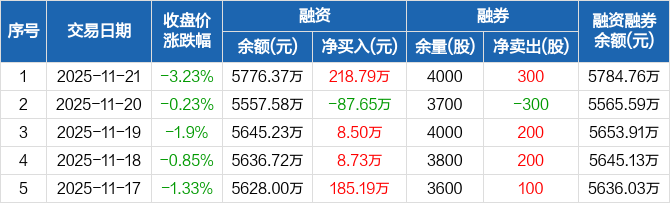 热威股份:融资净买入218.79万元,融资余额5776.37万元(11-21)