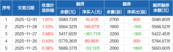 热威股份:融资净买入16.41万元,融资余额5580.73万元(12-01)