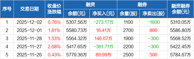 热威股份:融资净偿还273.17万元,融资余额5307.56万元(12-02)