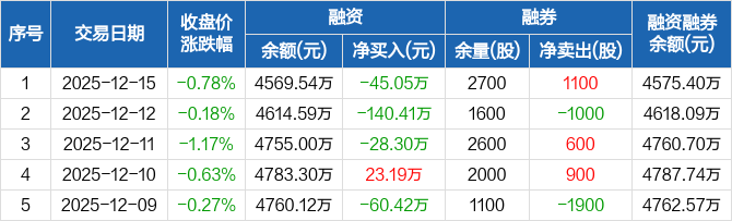 热威股份:连续3日融资净偿还累计213.76万元(12-15)