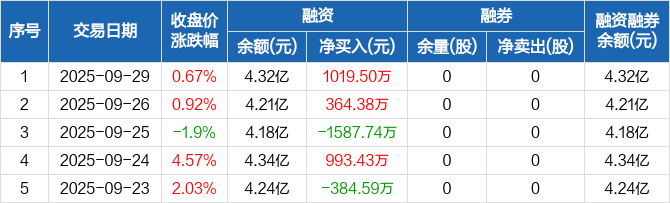 江化微:融资净买入1019.5万元,融资余额4.32亿元(09-29)