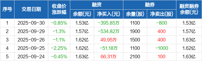 天成自控:融资净偿还395.85万元,融资余额1.53亿元(09-30)