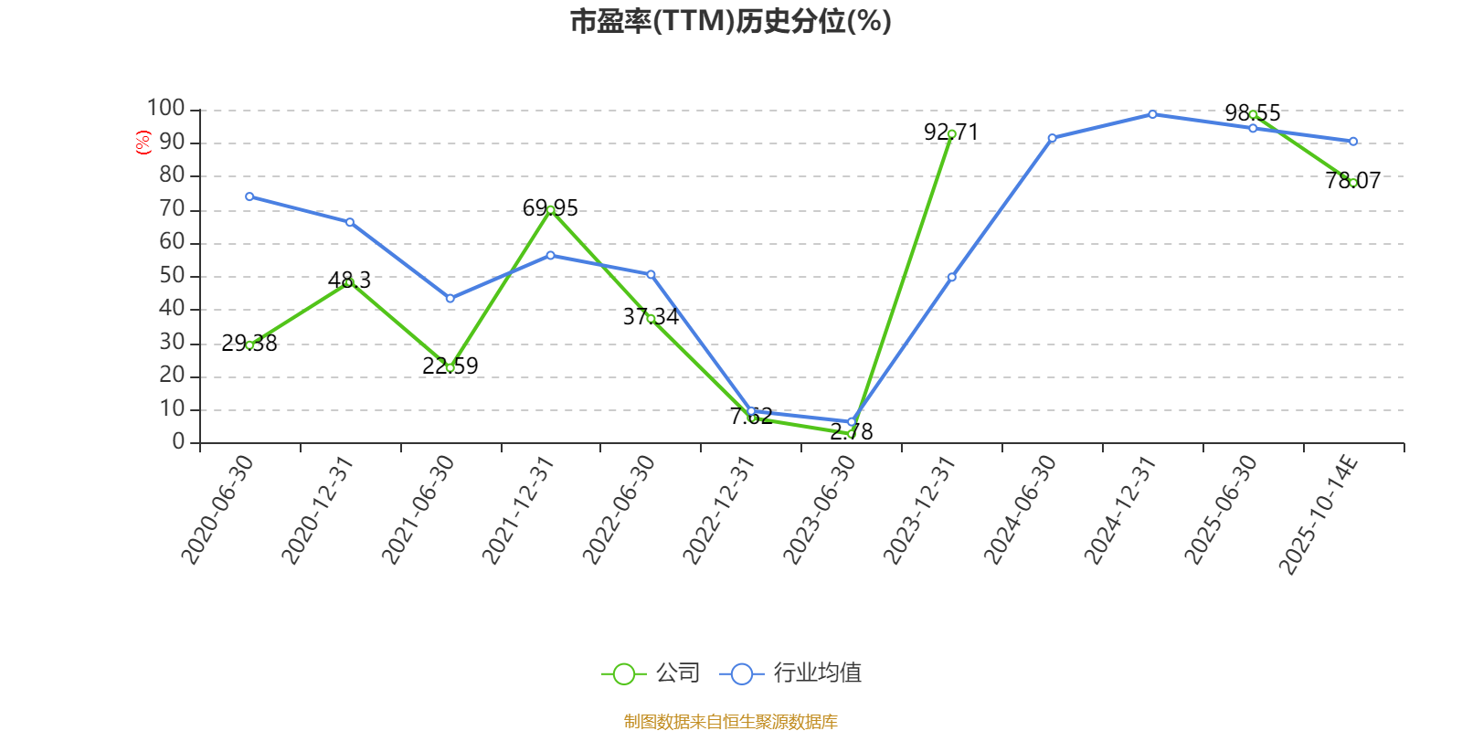 以本次披露业绩预告均值计算,公司近年市盈率(TTM)图如下所示: