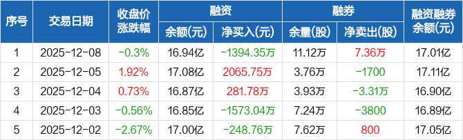 甘李药业:融资净偿还1394.35万元,融资余额16.94亿元(12-08)