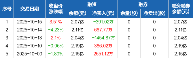 众鑫股份:融资净偿还391.02万元,融资余额2.07亿元(10-15)