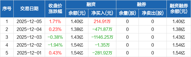 众鑫股份:融资净买入214.91万元,融资余额1.4亿元(12-05)
