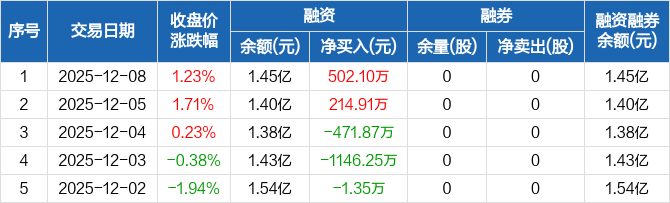 众鑫股份:融资净买入502.1万元,融资余额1.45亿元(12-08)