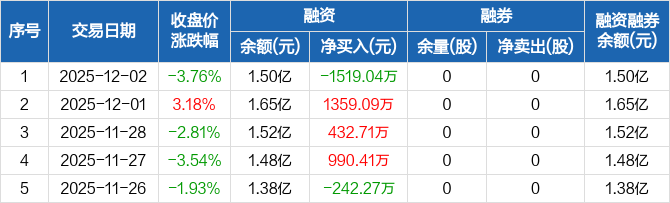 德力佳:融资净偿还1519.04万元,融资余额1.5亿元(12-02)