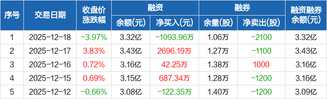 长白山:融资净偿还1093.96万元,融资余额3.32亿元(12-18)