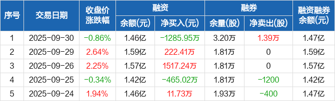 芯能科技:融资净偿还1285.95万元,融资余额1.46亿元(09-30)