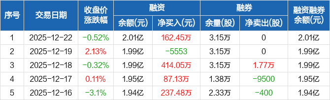 芯能科技:融资净买入162.45万元,融资余额2.01亿元(12-22)