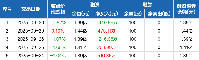 上海汽配:融资净偿还440.89万元,融资余额1.39亿元(09-30)