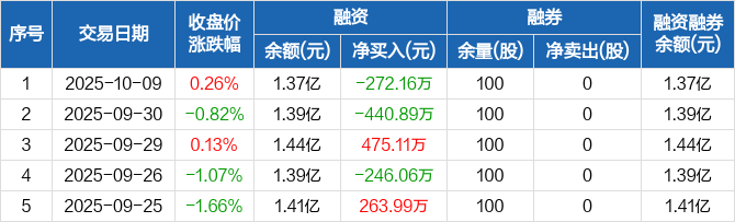 上海汽配:融资净偿还272.16万元,融资余额1.37亿元(10-09)