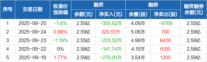 金能科技:融资净偿还350.62万元,融资余额2.55亿元(09-25)
