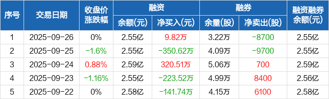 金能科技:融资净买入9.82万元,融资余额2.55亿元(09-26)