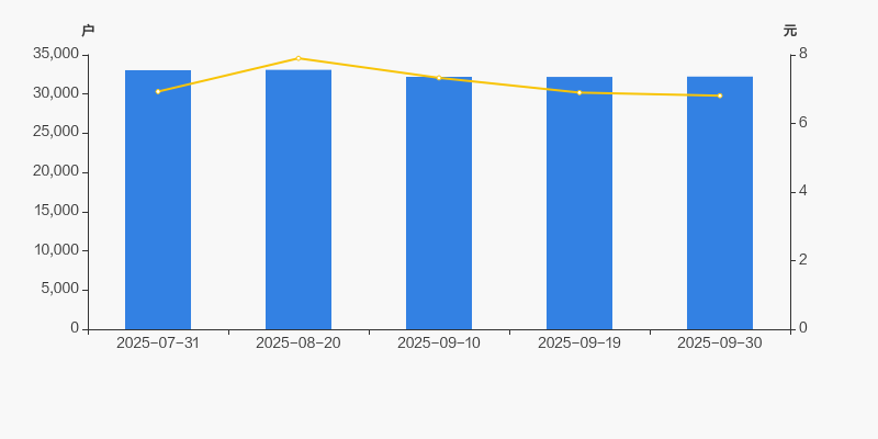 2025年7月31日至今,公司股东户数有所下降,区间跌幅为2.46%。2025年7月31日至2025年9月30日区间股价下降1.70%。