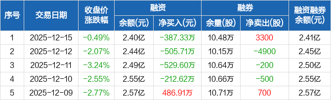 金能科技:连续4日融资净偿还累计1635.26万元(12-15)