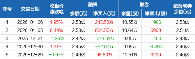 金能科技:融资净买入243.53万元,融资余额2.53亿元(01-06)