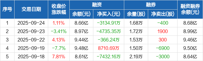 浙江荣泰:连续3日融资净偿还累计8236.5万元(09-24)