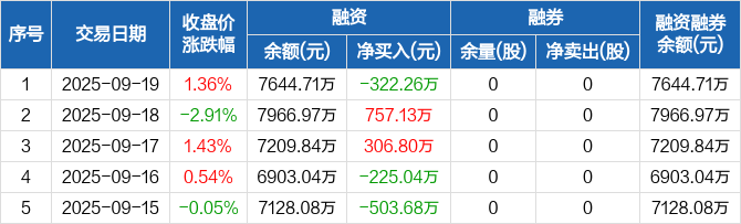 肯特催化:融资净偿还322.26万元,融资余额7644.71万元(09-19)