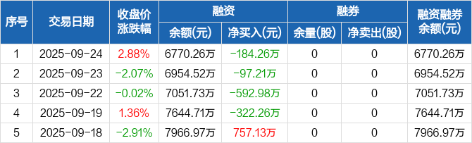 肯特催化:连续4日融资净偿还累计1196.71万元(09-24)