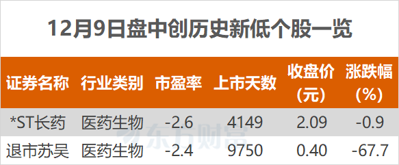 东方财富Choice数据显示,今日有2只个股盘中股价创历史新低。